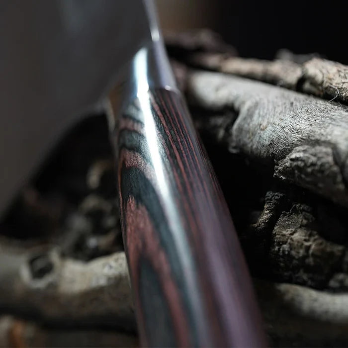 Vårt Pakka-trähandtag är designat för maximal komfort och perfekt balans, vilket gör att du kan skära med precision utan trötthet. Knivbladet i premium rostfritt stål säkerställer långvarig skärpa, motstånd mot rost och enkel rengöring, vilket ger en pålitlig och hållbar köksupplevelse.