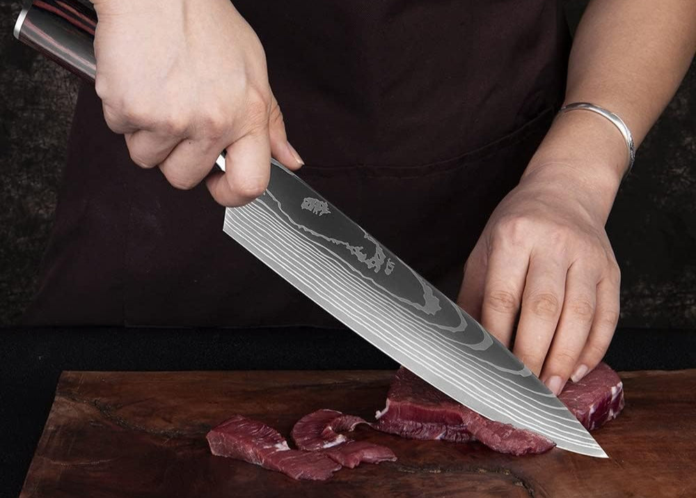 Laser Damascus-mönster – Elegant design som ger styrka och stil till din knivsamling.